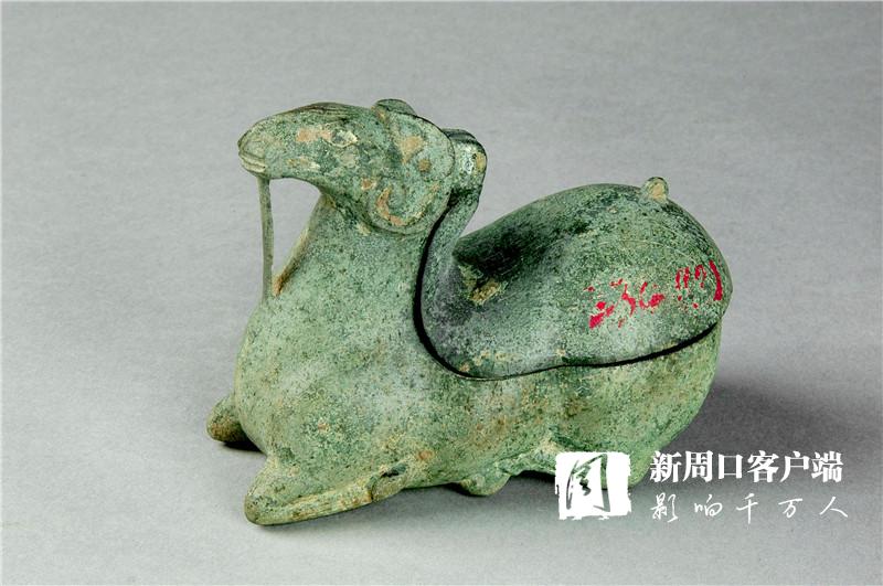 原來這件漢代臥羊銅燈白天是個精致擺件,晚上掀開器蓋,引上捻子,點上燭火,就秒變燈具。該燈分上下兩部分,羊頸下部設一活動樞紐與軀體相連結(jié),羊背做成可翻轉(zhuǎn)至頭頂?shù)臒舯P,背部上掀可以打開,可盛油點燈,引芯可燃。燈盤放下后又與羊體吻合,余油自動流入腹腔存放。古人用油一般是植物油或動物油,用蓋子一可防止不用時油料揮發(fā),二能防止老鼠偷喝,三能把未燃盡的油再利用。漢代臥羊銅燈整體構(gòu)思精巧細致,造型新穎。一盞小小的燈都能精細到這種程度,漢代的工藝制作水平由此可見一斑。
