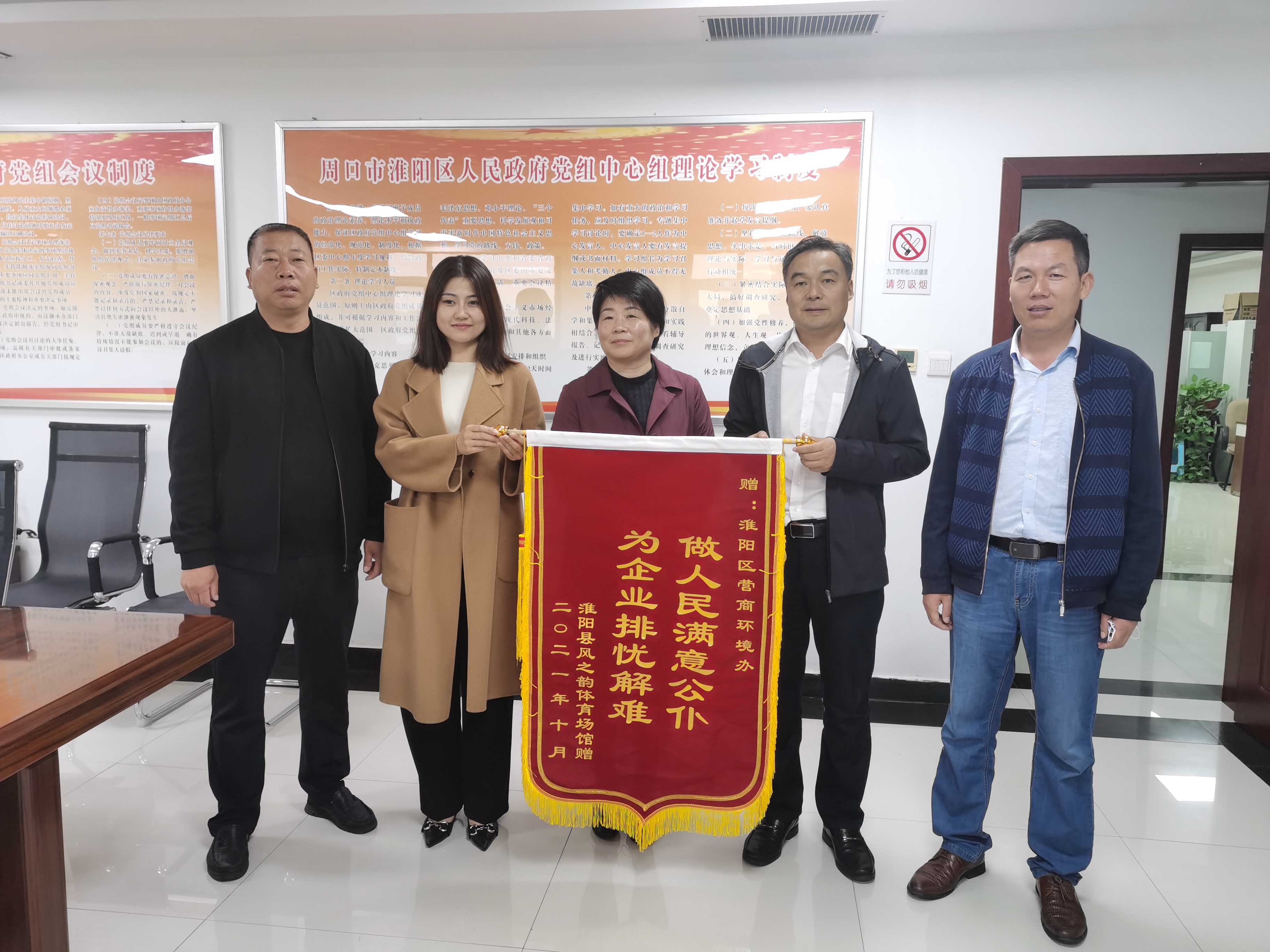 10月8日下午,淮陽區(qū)風之韻體育館負責人把一面印著“做人民滿意公仆 為企業(yè)排憂解難”的錦旗送到淮陽區(qū)優(yōu)化營商環(huán)境辦公室,對區(qū)營商辦協(xié)調職能部門容缺辦理,快速解決企業(yè)痛點難點問題表示感謝。