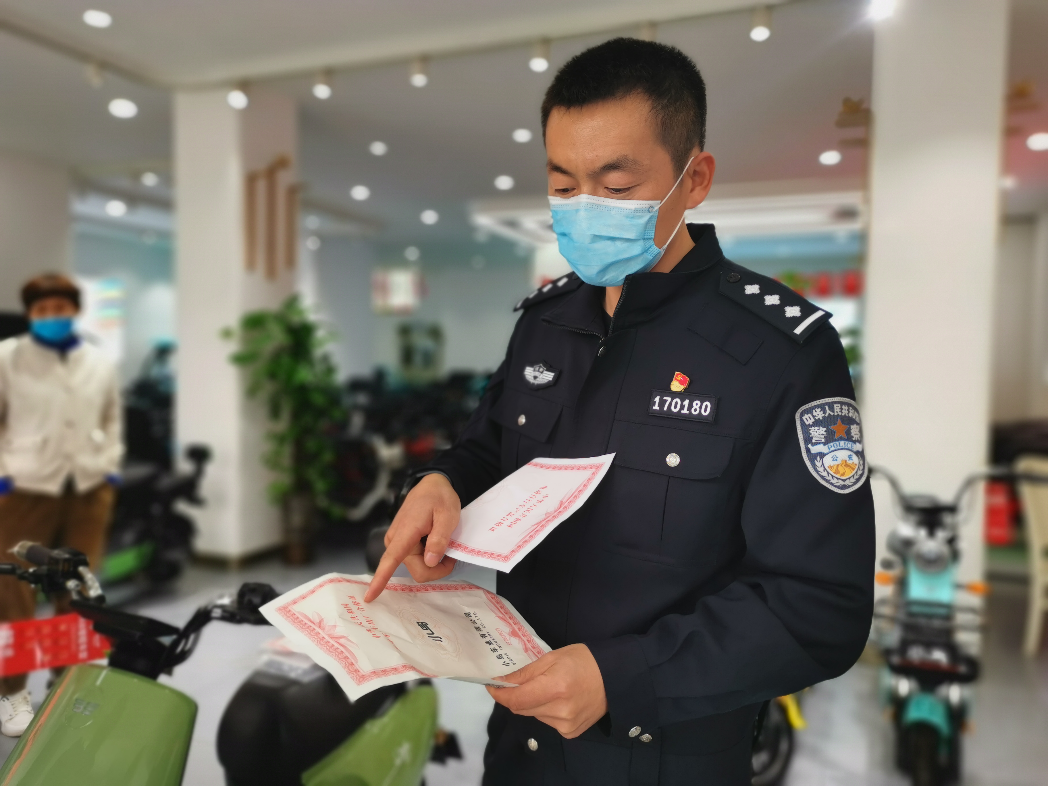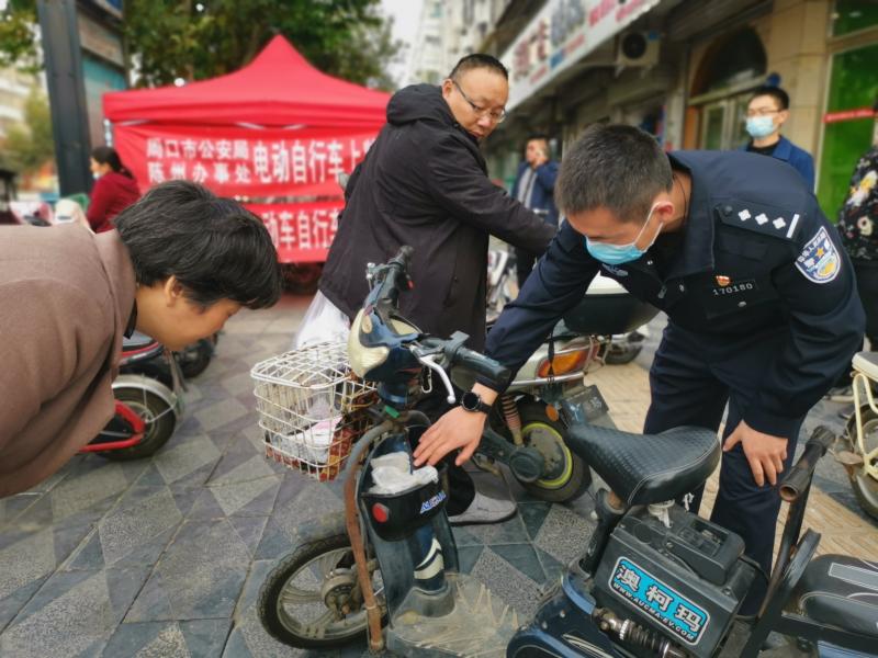 民警查看電動(dòng)自行車車架號(hào)