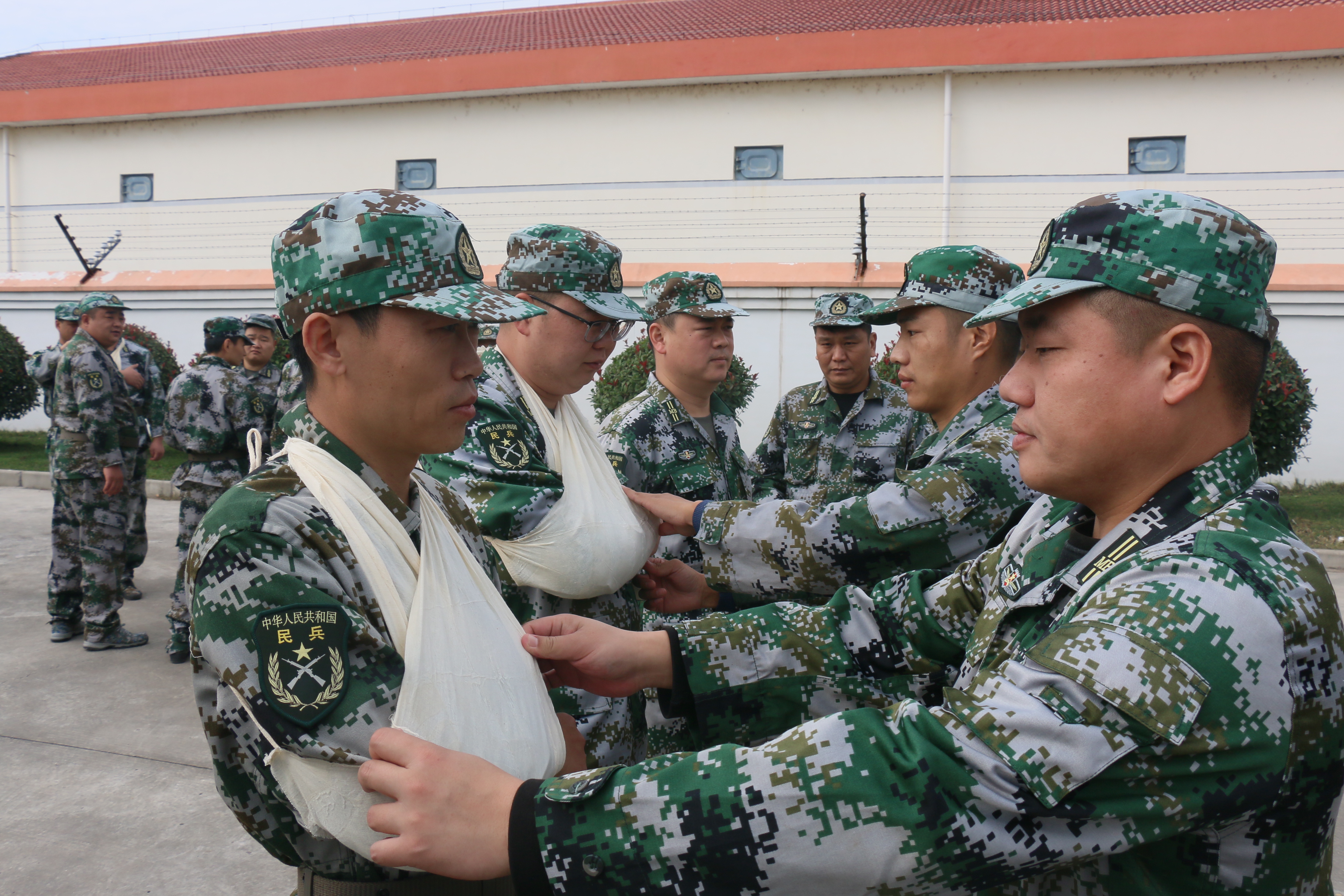 訓(xùn)練過程中,全體民兵統(tǒng)一著迷彩服,軍容嚴整,在統(tǒng)一指揮下,開展隊列訓(xùn)練、政治教育、負重徒步行軍、衛(wèi)生與救護、偽裝防護、防爆隊形和防爆器材使用等課目,多要素融合,錘煉民兵技能戰(zhàn)術(shù)本領(lǐng)和戰(zhàn)斗作風(fēng),提高民兵應(yīng)急連的軍政素質(zhì)和遂行多樣化軍事任務(wù)的能力。訓(xùn)練場上,民兵們沒有絲毫的偷懶和松懈,積極投身訓(xùn)練,在一次又一次的重復(fù)中,努力將動作做得更規(guī)范、更標(biāo)準(zhǔn),訓(xùn)練熱情高漲,比學(xué)趕超氛圍濃厚。