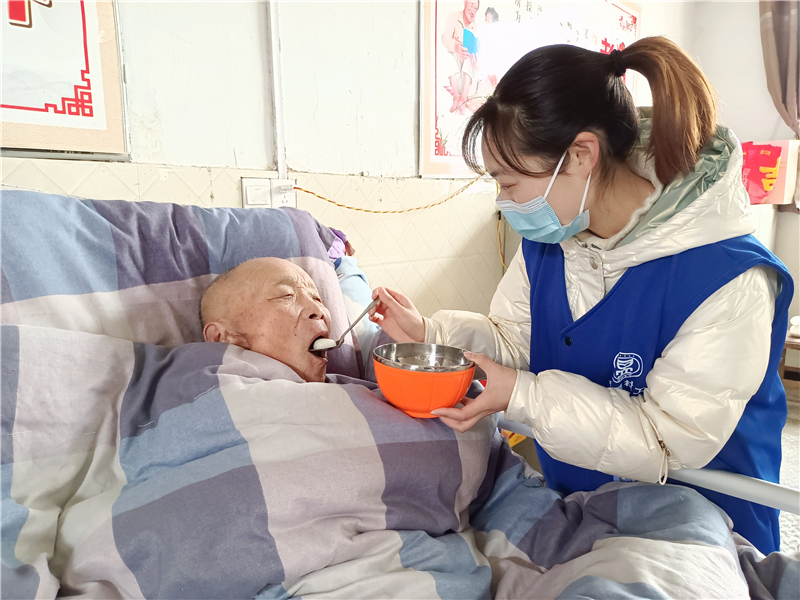 在敬老院內(nèi),社工、志愿者有的為老人打掃房間,有的陪老人拉家常,有的和老人一起參與趣味套圈……敬老院內(nèi)不時傳來笑聲。