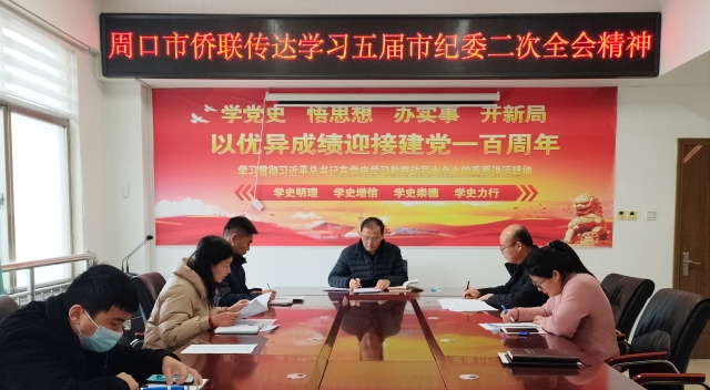 2月16日,周口市僑聯(lián)召開黨組(擴(kuò)大)會議,傳達(dá)學(xué)習(xí)市委五屆二次全會暨市委經(jīng)濟(jì)工作會議精神,市僑聯(lián)黨組書記、主席馮連根主持會議。