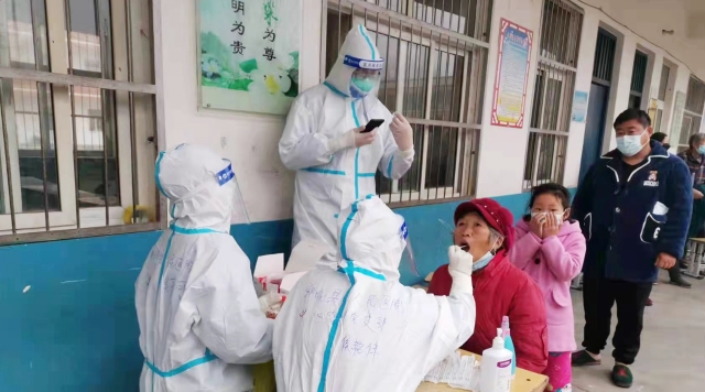 3月25日夜,天空下著小雨,李碧瑩和同事們乘車到市衛(wèi)生健康委員會(huì)集合,與其他醫(yī)院的50多名同仁一道,凌晨4點(diǎn)從周口出發(fā),早上7點(diǎn)到達(dá)太康,簡單吃點(diǎn)早餐后,便開始緊張的核酸檢測采集工作。