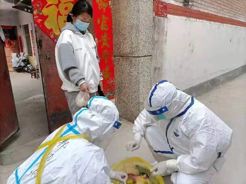 到達太康后,王群禮被分到了城關回族鎮(zhèn)封控區(qū)進行入戶核酸采集,當時的他也很緊張,認真地穿防護服,熟記采集核酸的每一個動作要領,然后投身抗疫最前線。在入戶采樣的時候,王群禮發(fā)現(xiàn)有一個小女孩獨自在家,她每次聽到敲門聲都是先開一點縫,悄悄觀察外面,當看到是防疫人員時,才慢慢打開門。“我可以看出她的恐懼和無助,不知道她晚上怕不怕,會不會做飯,問她怎么吃飯,她也不說話,我心里很不是滋味?!睆哪翘扉_始,王群禮每次入戶采核酸的時候,就幫她帶點吃的,王群禮會把他的早餐留給她,還把自己的水果、零食也都送給她。