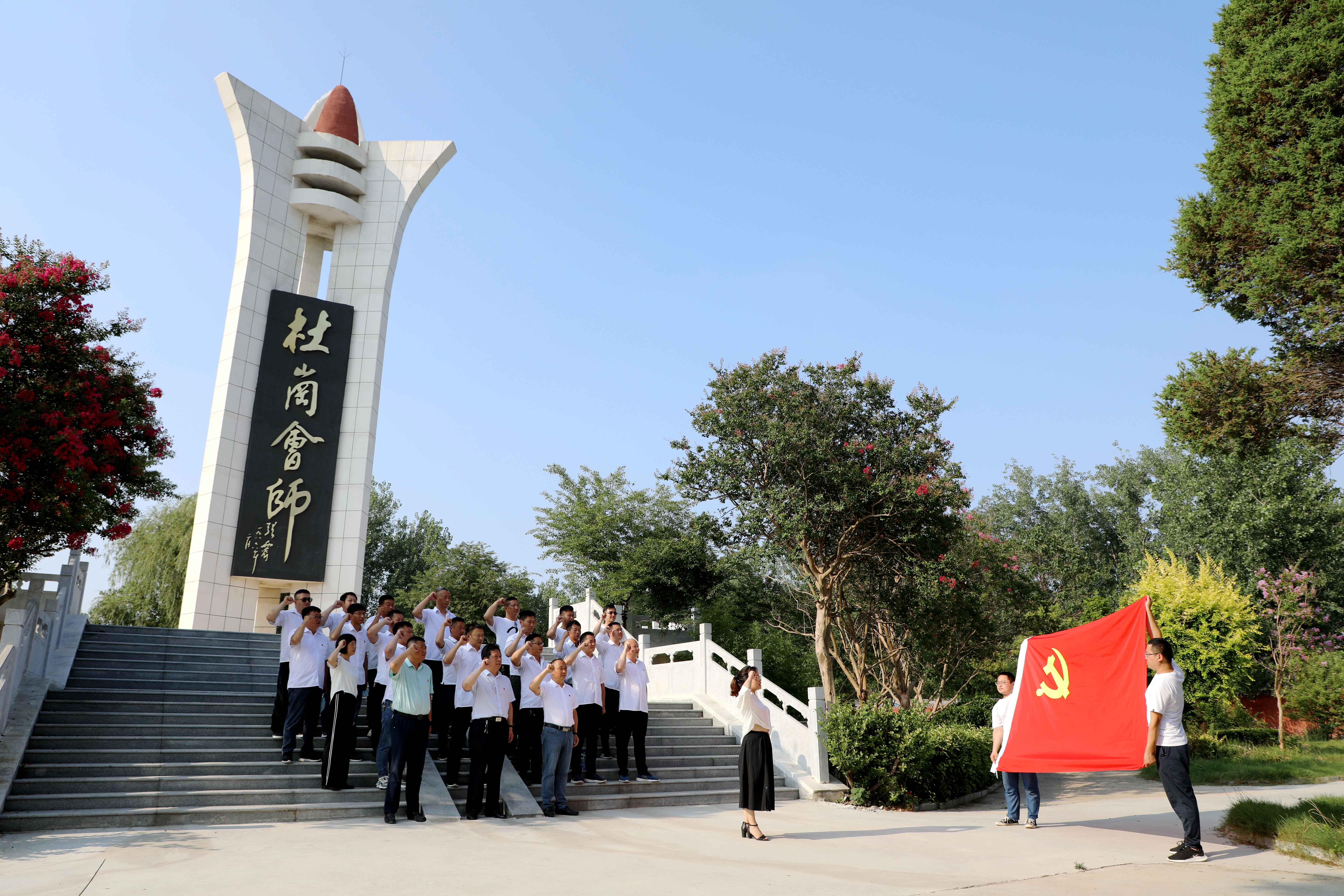 在杜崗會師紀(jì)念碑下,黨員面對鮮紅的黨旗,高舉右拳,重溫入黨誓詞,重憶入黨初心,在錚錚誓言中再燃奮斗激情。