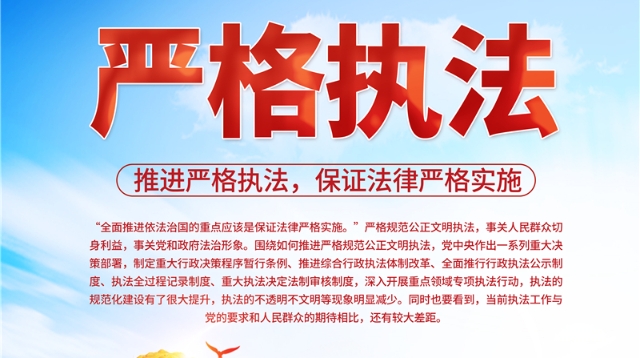 “全面依法治國的重點(diǎn)應(yīng)該是保證法律嚴(yán)格實(shí)施。”嚴(yán)格規(guī)范公正文明執(zhí)法,事關(guān)人民群眾切身利益,事關(guān)黨和政府法治形象。