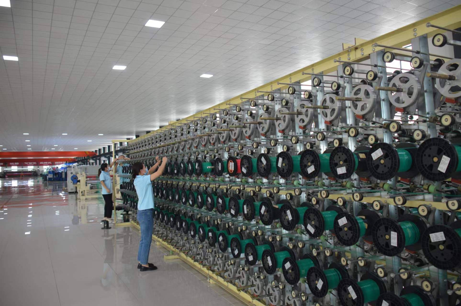在經(jīng)濟(jì)開發(fā)區(qū)晶鑫科技生產(chǎn)車間,只見高大寬敞的車間內(nèi),工人們在各自崗位上有條不紊地忙碌著。拉絲車間里,一臺大型編織機(jī)械運(yùn)轉(zhuǎn)著,一名技術(shù)人員在操控臺上注視著屏幕?!斑@是剛引進(jìn)的國外設(shè)備,生產(chǎn)效率很高?!避囬g負(fù)責(zé)人介紹說。在編織車間,工作人員馬杰通過顯示屏正在熟練地操作著一臺編織機(jī)。“這臺機(jī)器比人工效率要高出好多倍?!彼龑ψ约耗懿僮饕慌_技術(shù)要求很高的自動化生產(chǎn)設(shè)備感到特別自豪。“我們生產(chǎn)的聚酯網(wǎng)產(chǎn)品在市場上供不應(yīng)求?!避囬g負(fù)責(zé)人說。