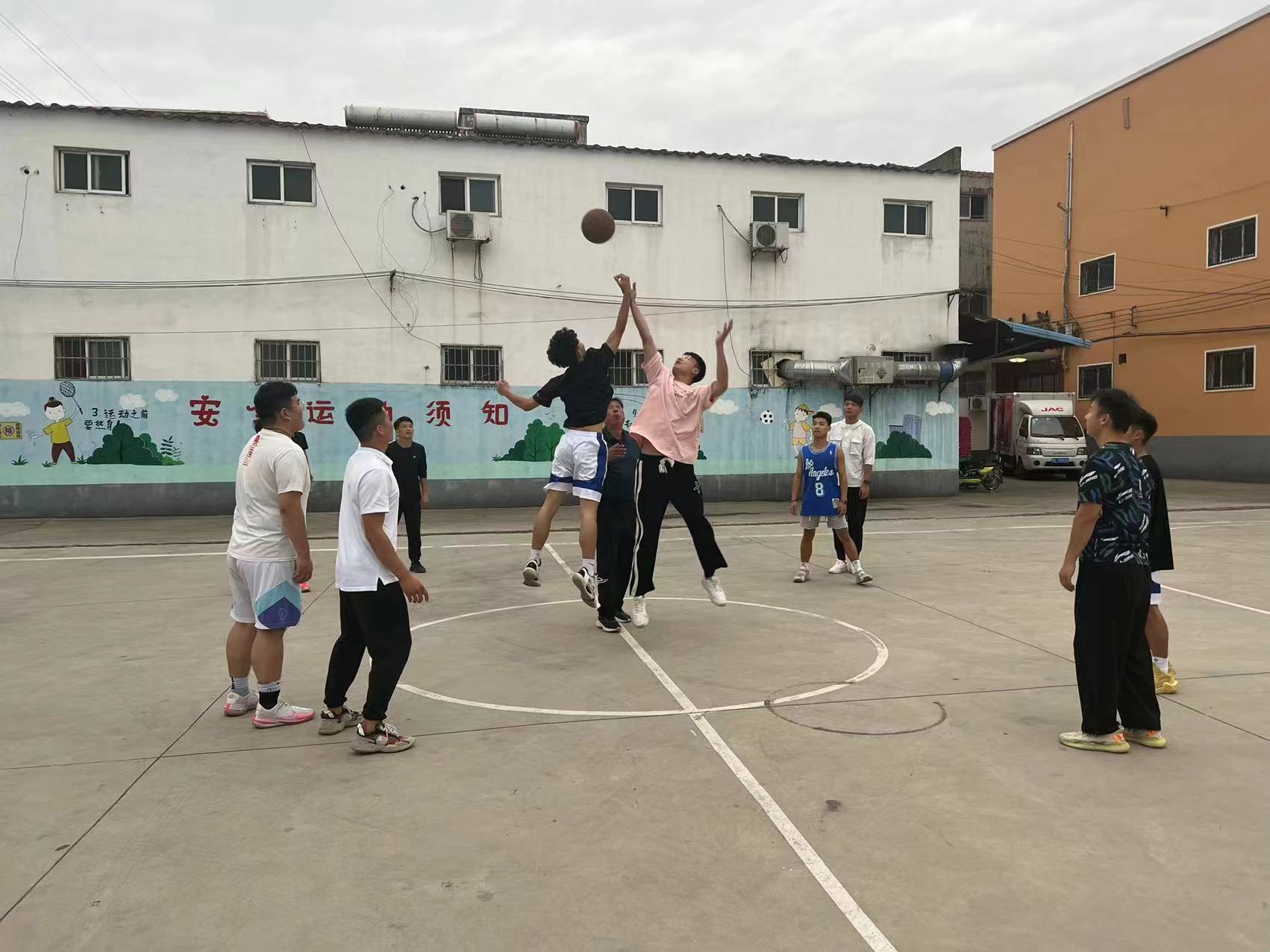 淮河路辦事處社區(qū)干部和周口技師學(xué)院的老師們在賽場上揮汗如雨、你爭我奪,比賽緊張而熱烈。雙方隊(duì)員拼搶積極,防守嚴(yán)密,既有遠(yuǎn)投的三分,跨步飛躍的上籃;又有穿插籃下精巧的勾手,還有忽左忽右轉(zhuǎn)身帶球的突破。一場籃球賽充分展示了籃球運(yùn)動的魅力,賽出了團(tuán)結(jié)和友誼,展現(xiàn)了不言放棄、奮力拼搏的精神,也體現(xiàn)了籃球運(yùn)動的廣泛群眾基礎(chǔ)。