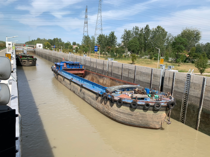 楊莊船閘是復(fù)線二級(jí)船閘,高良澗船閘是三線二級(jí)船閘,其外部環(huán)境優(yōu)雅,堪稱(chēng)花園級(jí)單位,均實(shí)現(xiàn)了全天24小時(shí)通行。高良澗船閘是淮河航道入京杭大運(yùn)河的第一道船閘,隨著上游豫皖兩省內(nèi)河航運(yùn)的發(fā)展,它成為淮安市最繁忙的船閘。從周口駛出的貨船,通江達(dá)海必經(jīng)這里。9月24日我們?cè)诟吡紳敬l采訪時(shí),就有3艘周口籍貨船等候過(guò)閘。在高良澗船閘負(fù)責(zé)同志的熱情幫助下,我們來(lái)到洪澤湖邊,登上豫吉祥960號(hào)船。周口籍船主孫光峰介紹,以前過(guò)這個(gè)閘,最多要等10天時(shí)間,現(xiàn)在當(dāng)天來(lái)當(dāng)天就能走,效率提高實(shí)在太多了。
