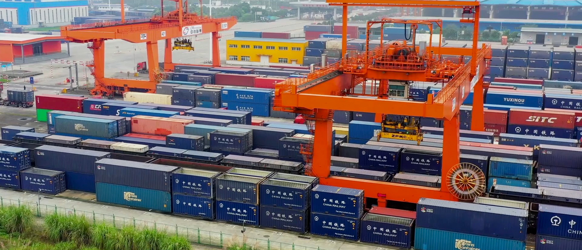 集裝箱在太倉(cāng)港內(nèi)等待轉(zhuǎn)運(yùn)