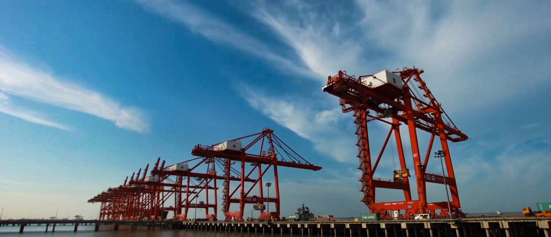 “太倉(cāng)港位于長(zhǎng)江入海口南岸,地處‘長(zhǎng)江經(jīng)濟(jì)帶’和‘21世紀(jì)海上絲綢之路’交匯處,擁有38.8公里的黃金岸線、-12.5米深水航道,區(qū)位優(yōu)勢(shì)十分顯著?!瘪R沛宇指著看臺(tái)上的展板興致勃勃地對(duì)我們說(shuō),目前,太倉(cāng)港已建成投運(yùn)各類碼頭泊位95個(gè)(萬(wàn)噸級(jí)以上泊位40個(gè)),其中集裝箱泊位14個(gè),形成了集裝箱、件雜貨、干散貨、液體化工、裝備制造5大作業(yè)區(qū)。