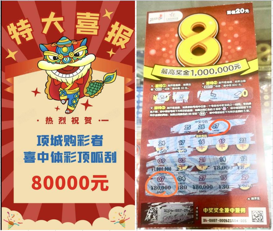 日前,張先生路過(guò)項(xiàng)城4116810161體彩實(shí)體店時(shí)挑選了幾張面值10元的“超值8”。沒(méi)想到其中一張竟刮出了8萬(wàn)元大獎(jiǎng)。