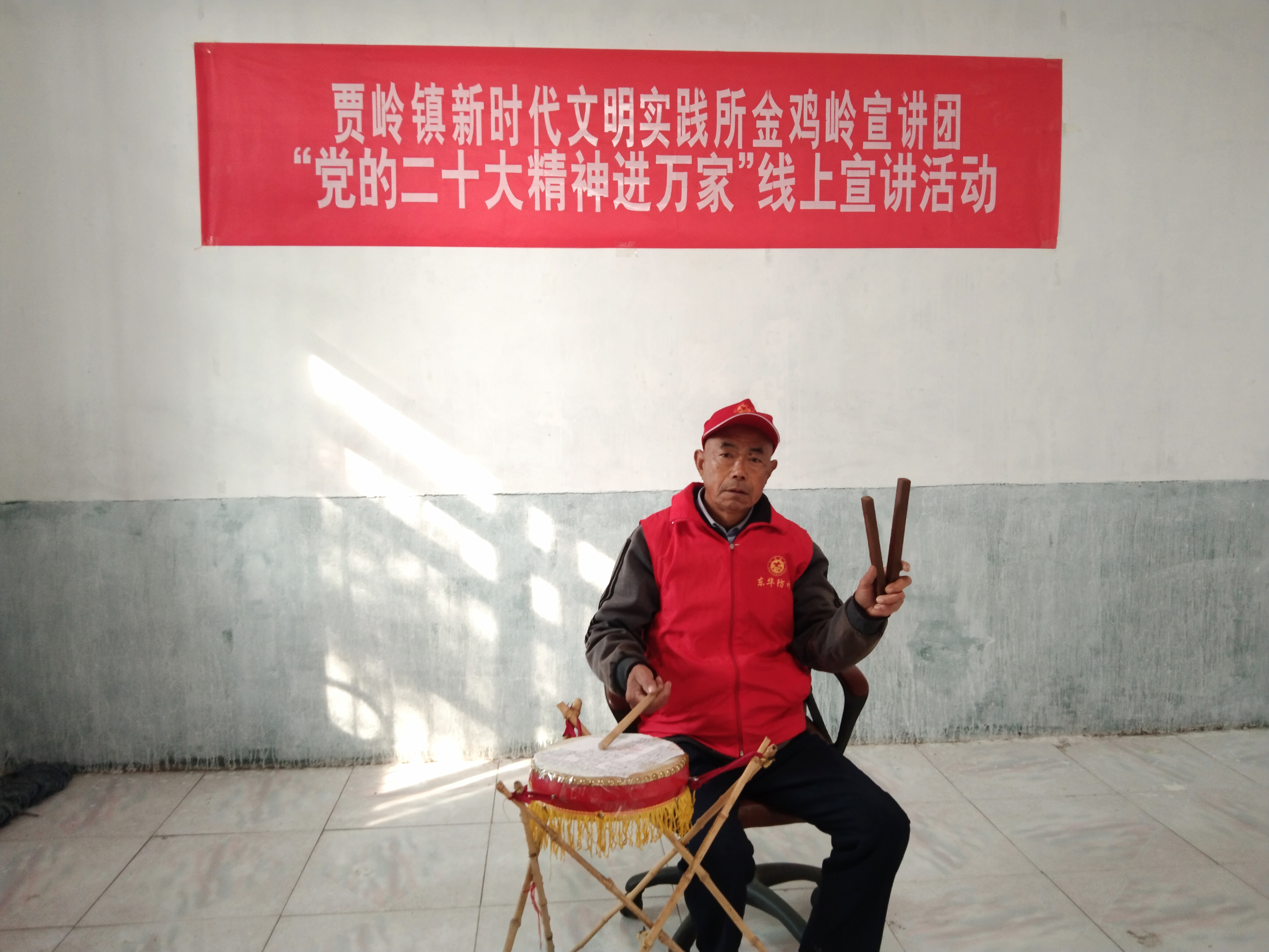 近日,項城市賈嶺鎮(zhèn)新時代文明實踐所金雞嶺宣講團(tuán)志愿者、七旬老人閆汝才閑暇就會坐在一張凳子上,一手敲鼓、一手夾板,配合唱腔、道白,利用非遺“大鼓書”藝術(shù)表演形式,通過抖音平臺在線上宣傳黨的二十大精神。