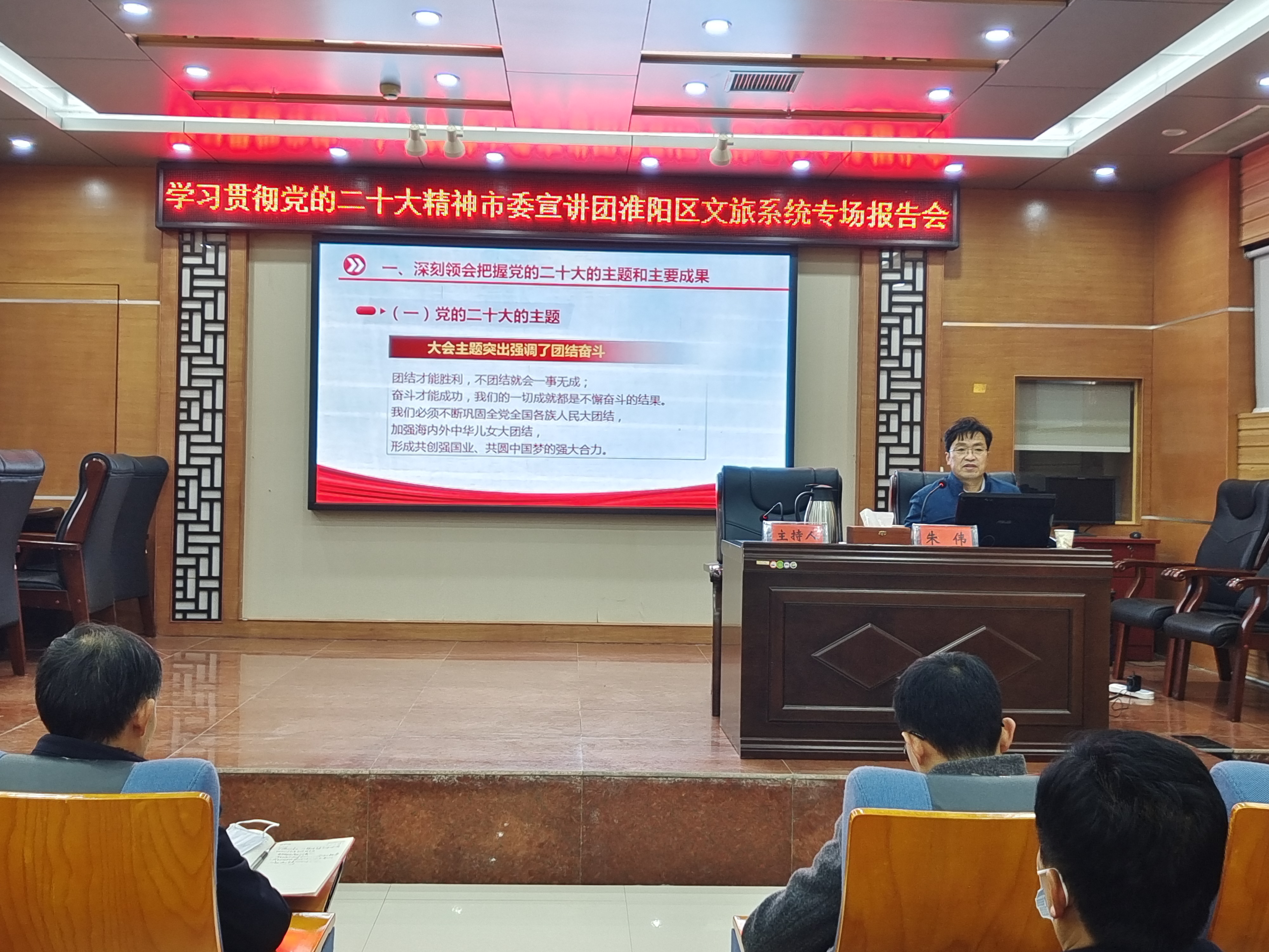 11月29日下午,周口市委宣講團(tuán)成員,市文化廣電和旅游局黨組成員、副局長朱偉走進(jìn)太昊陵景區(qū),向淮陽區(qū)廣大文旅干部職工、游客宣講黨的二十大精神。