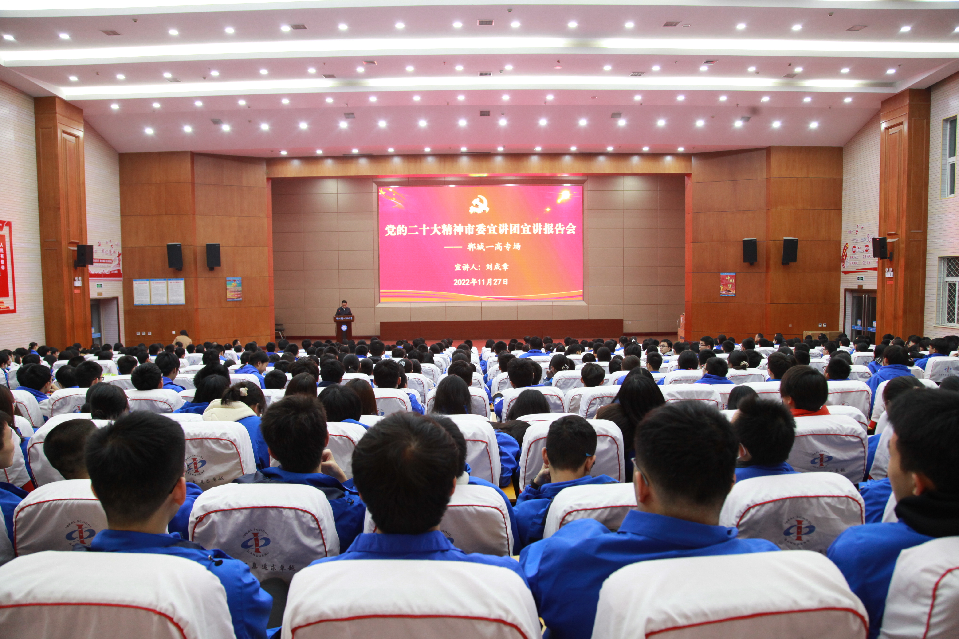 “我們將牢牢抓住國家‘縣中提升計劃’政策機(jī)遇,在教育、教學(xué)、服務(wù)、管理等方面進(jìn)行優(yōu)化與完善,在拉高標(biāo)桿中爭先進(jìn)位,在加壓奮進(jìn)中開創(chuàng)新局,提升學(xué)校辦學(xué)水平,努力讓更多農(nóng)村孩子接受優(yōu)質(zhì)教育,為全面推進(jìn)鄉(xiāng)村振興提供更強(qiáng)大的人才和智力支撐?!?1月27日晚,黨的二十大精神市委宣講團(tuán)鄲城一高專場宣講報告會舉行,黨的二十大代表、市委宣講團(tuán)成員、鄲城一高黨委書記、校長劉成章以《學(xué)深悟透新精神 培根鑄魂育新人》為題作了宣講報告。400余名師生代表聆聽。