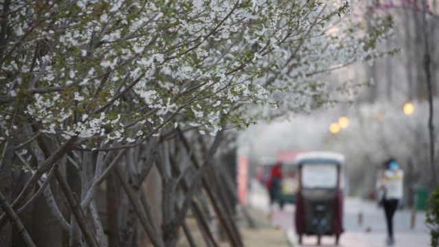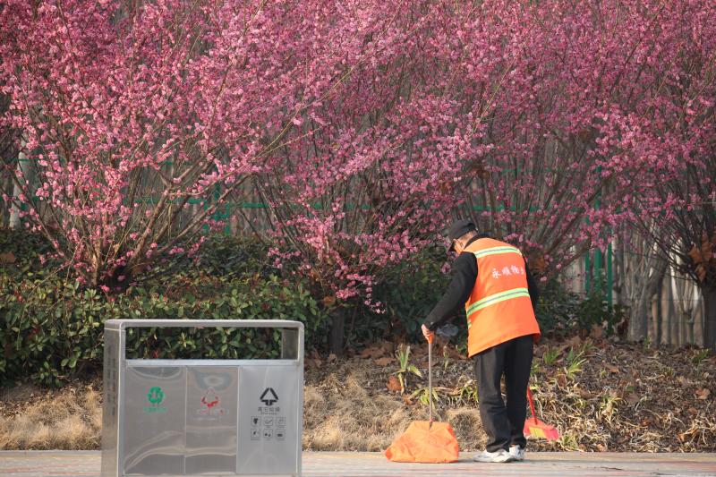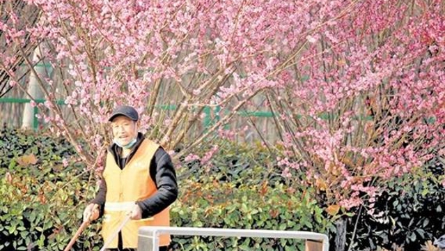 ?3月11日,一名環(huán)衛(wèi)工人在中心城區(qū)光明路旁清掃飄落的花瓣。連日來(lái),隨著氣溫逐漸升高,周口市中心城區(qū)路旁、湖邊、花園里的花競(jìng)相綻放,為周口全力營(yíng)造宜居、宜業(yè)、宜游城市增添了靚麗色彩。