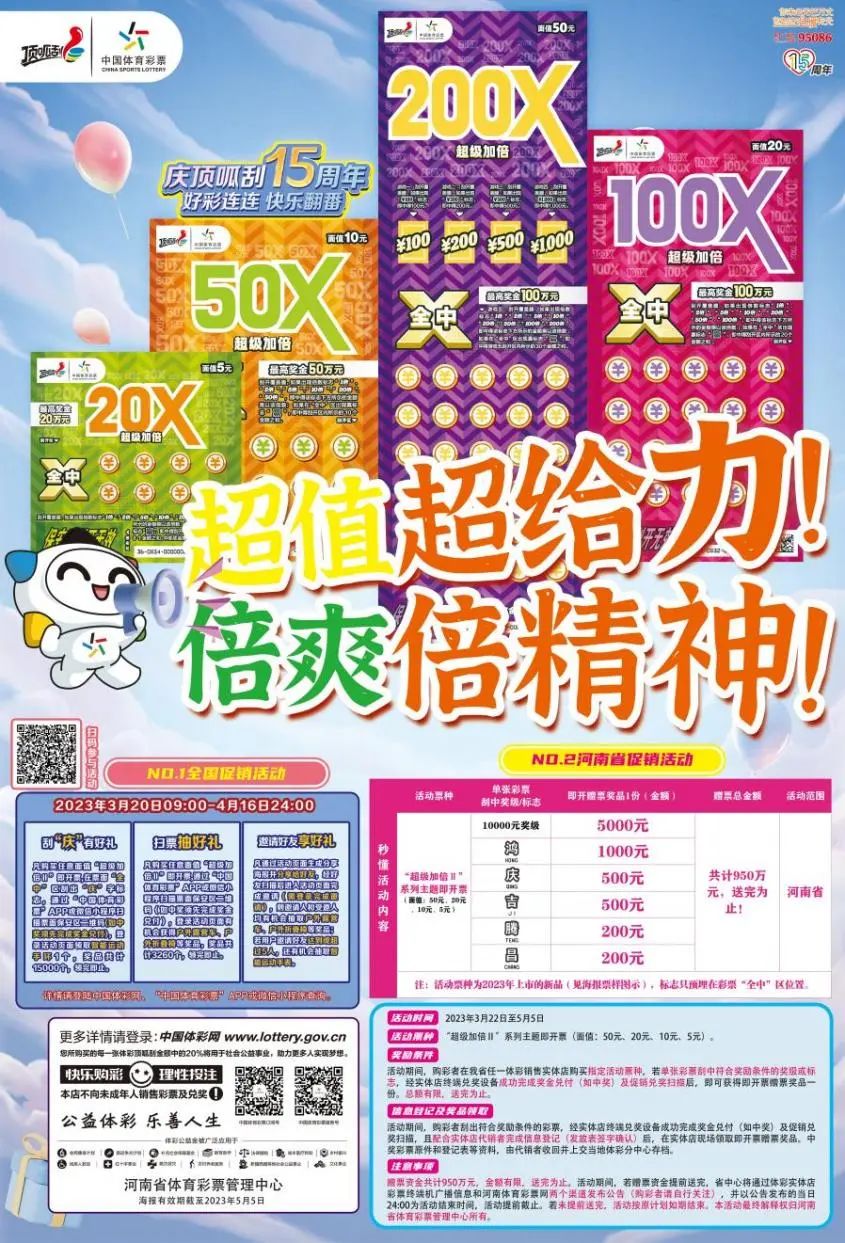 體彩“超級(jí)加倍Ⅱ”:950萬(wàn)元巔峰大促!超給力,倍精神!