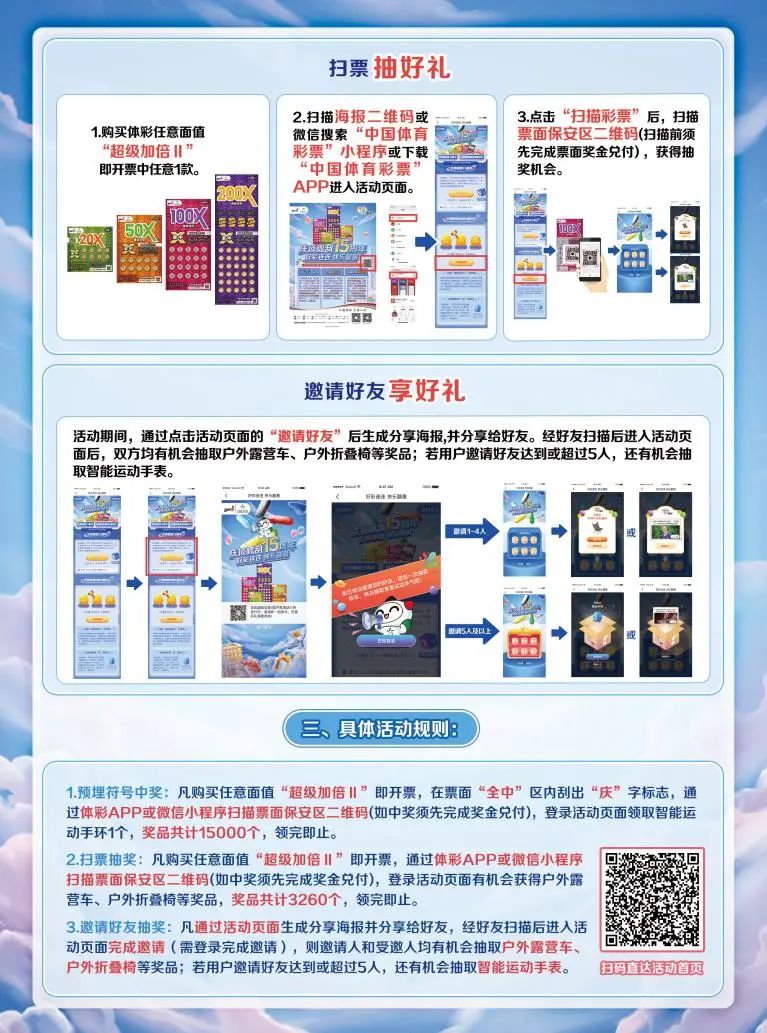 3.全國(guó)促銷活動(dòng)細(xì)則,詳見(jiàn)“中國(guó)體育彩票”APP、微信小程序活動(dòng)頁(yè)面,或登錄中國(guó)體彩網(wǎng)查詢相關(guān)信息。
