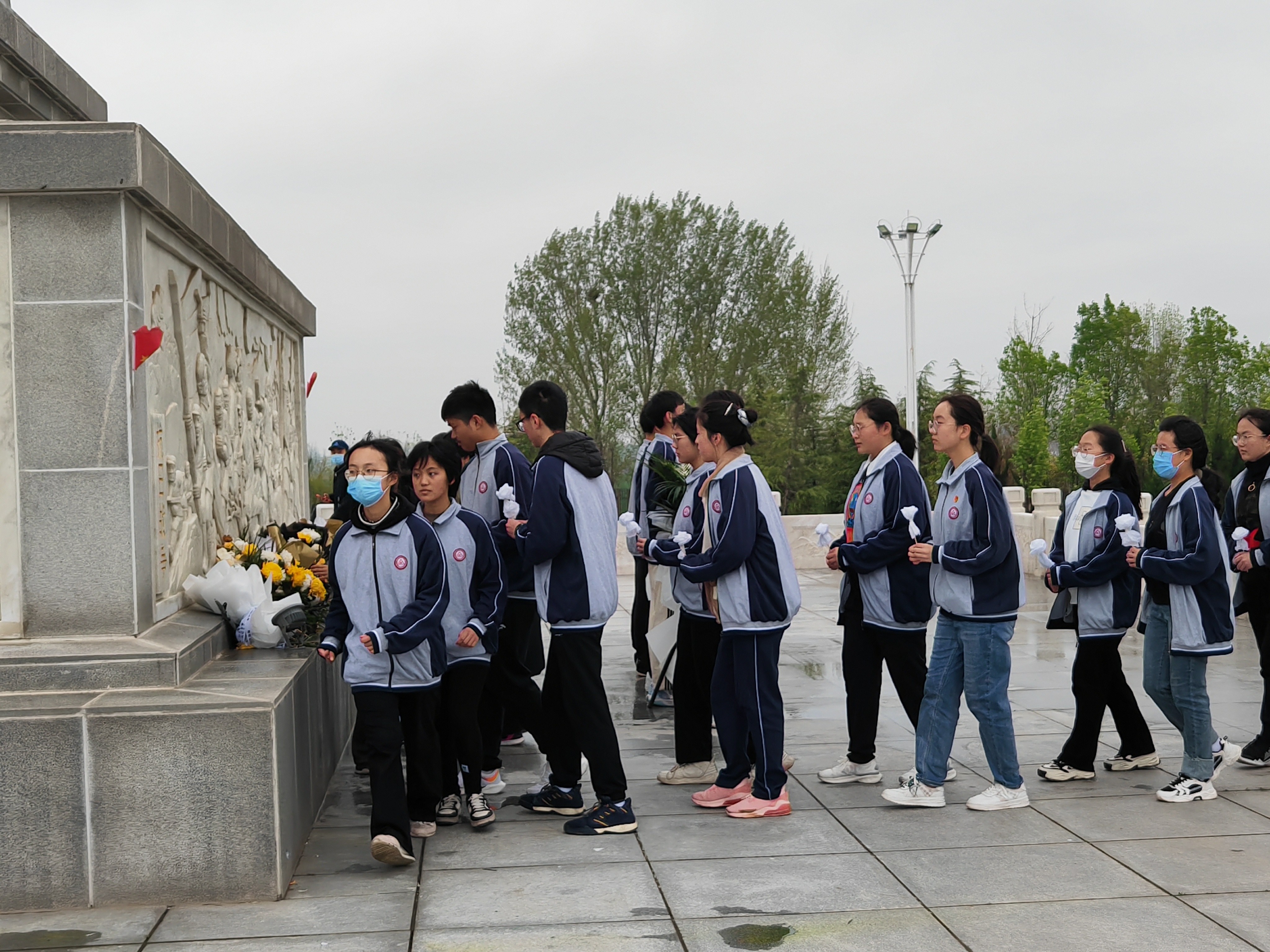 清晨6點(diǎn)30分,料峭冷風(fēng)中,周口一高高二年級(jí)1400多名師生在校領(lǐng)導(dǎo)的帶領(lǐng)下,冒著細(xì)雨步行前往十多公里外的周口市烈士陵園開(kāi)展清明祭掃活動(dòng)。