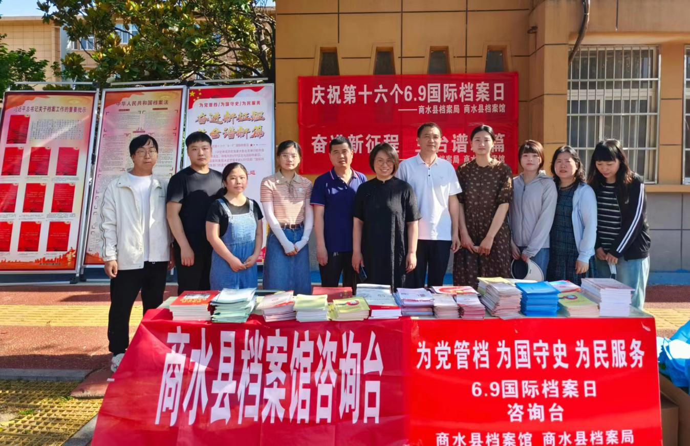 • 6月9日是第16個(gè)國(guó)際檔案日,為宣傳普及檔案知識(shí),弘揚(yáng)檔案文化,增強(qiáng)檔案工作社會(huì)影響。6月9日上午,商水縣檔案局、商水縣檔案館在商水縣委大門外兩側(cè)開展“奮進(jìn)新征程 蘭臺(tái)譜新篇”6.9國(guó)際檔案日主題宣傳活動(dòng)。