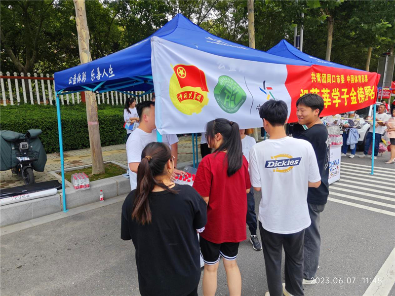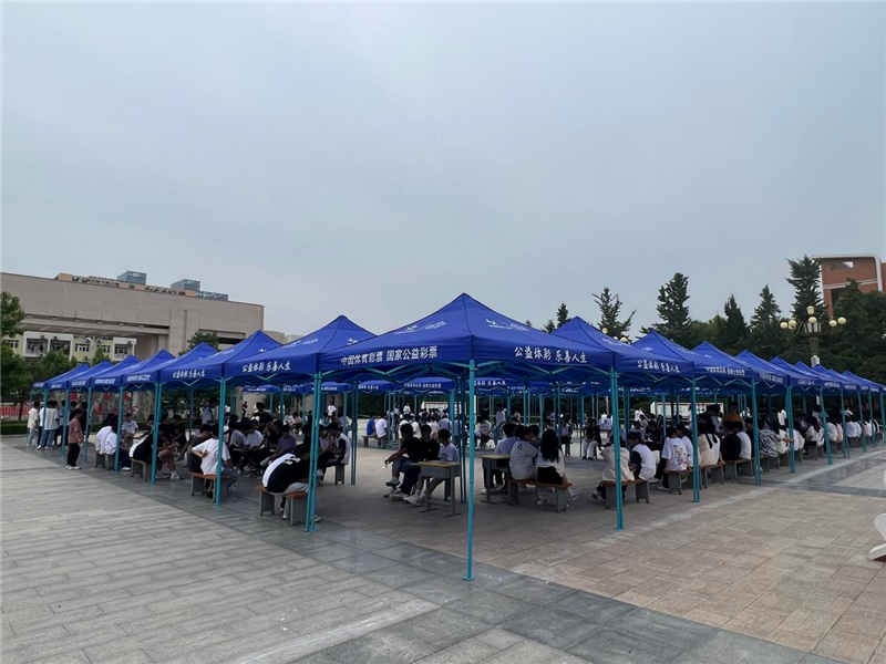 本次活動(dòng)周口體彩分中心協(xié)調(diào)到40余頂帳篷,在考場外設(shè)置服務(wù)點(diǎn)為考生及家長提供飲用水、歇息區(qū)。結(jié)合周口市文昌中學(xué)實(shí)際情況,在考場校園內(nèi)搭設(shè)一整片體彩遮陽帳篷陰涼區(qū)域,為考生候場提供一片“清涼”。 與此同時(shí),體彩志愿者熱情地為考生及家長提供愛心服務(wù),送上一瓶瓶清涼的礦泉水,帶著滿滿的愛心與祝福,給莘莘學(xué)子們加油助威,讓他們切身感受到體彩人的擔(dān)當(dāng)和真摯的關(guān)愛。