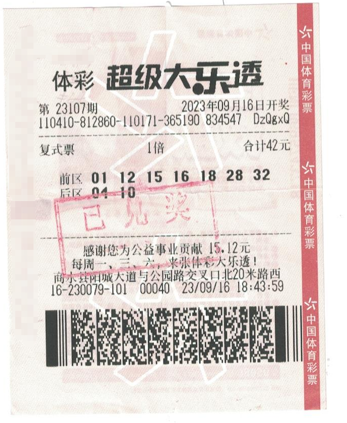 日前,超級大樂透第23107期開獎,前區(qū)開出號碼:01、12、15、16、18,后區(qū)開出號碼:03、10。位于商水縣陽城大道與公園路交叉口北20米路西(實(shí)體店編號:4116230079)的幸運(yùn)實(shí)體店傳來喜訊:某購彩者喜中大樂透二等獎,斬獲獎金16.9萬元。