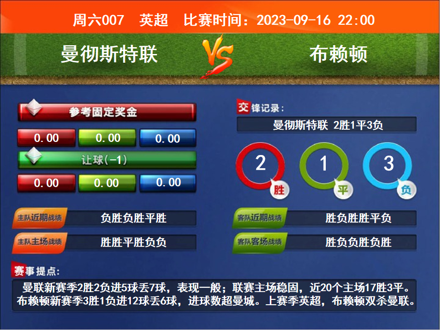 周六007 英超 曼徹斯特聯(lián)VS布賴頓