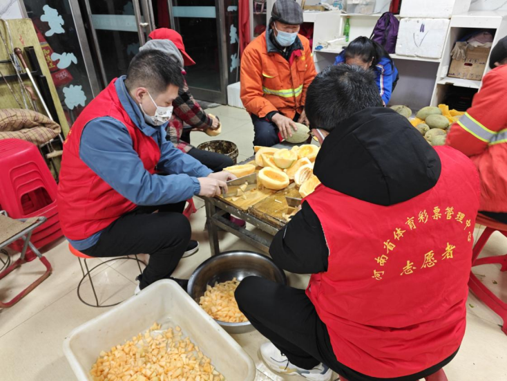 第二日早晨5點,周口體彩4名志愿者來到“東方愛心粥屋”開展志愿服務,洗菜、切菜、炒菜、熬粥……大家有條不紊地準備著早飯?!拔覀儝叩仄鸬煤茉纾瑏淼竭@吃碗熱粥,更有干勁了?!薄爸驹刚哒尜N心,熱粥熱菜的,感覺很幸福?!闭诔栽顼埖沫h(huán)衛(wèi)工人你一言我一語、贊聲一片。