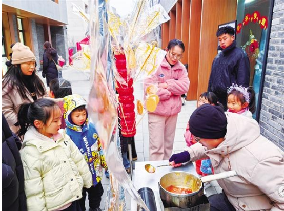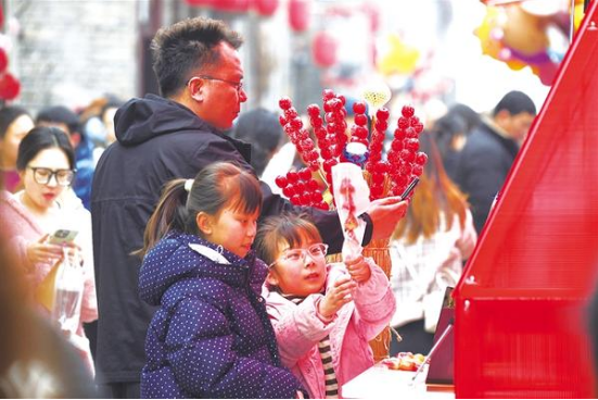 • 近日,周家口南寨歷史文化街區(qū)擊鼓開街,第三屆“三川十館·春會”同步啟幕。街巷深處,兩位小朋友在家長陪同下挑選冰糖葫蘆,笑語盈盈。
