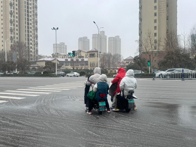 記者在周口大道看到,過(guò)往車(chē)輛紛紛拉開(kāi)車(chē)距、緩慢通行,騎電動(dòng)車(chē)的市民大多戴上了帽子、裹緊了身上的棉衣,過(guò)往行人撐著雨傘、頂著寒風(fēng)匆匆趕路。