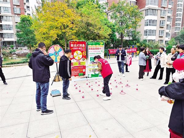 • 叔叔、阿姨,你們知道垃圾怎么分類嗎?平時家里的垃圾分類有沒有什么問題?歡迎你們參加垃圾分類知識趣味游戲競猜,答對了可以領取禮品……”