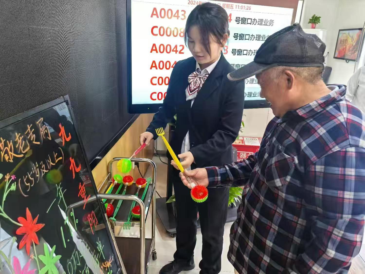 該行深入貫徹落實“工行驛站”服務民生,做好“五篇大文章”,以“引進來+走出去”和“線上+線下”聯(lián)動方式,依托網(wǎng)點資源稟賦,圍繞年長進店客群,開展“尊老敬老”活動,邀請他們體驗工行驛站愛心窗口、自助機具大字版和適老金融自助終端等助老服務設(shè)施;向老年客戶“一對一”宣傳普及國家養(yǎng)老保障政策,介紹工商銀行適老金融產(chǎn)品及服務;不定期聯(lián)合養(yǎng)老、醫(yī)療等機構(gòu),向“銀發(fā)”客群提供健康咨詢服務;為行動不便的年邁老人上門辦理金融業(yè)務,加強對老年客群的關(guān)心關(guān)愛,讓老年客戶親身體驗到工商銀行的暖心服務。