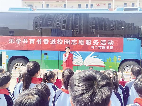 周口的鄉(xiāng)村里,也藏著對書的渴望。2016年我們買了第一輛流動(dòng)圖書車,3000多冊書裝在車上,像一座移動(dòng)的小圖書館。這些年,車轍印遍布各縣(市、區(qū))的鄉(xiāng)村學(xué)校、脫貧點(diǎn),2024年我們又在淮陽區(qū)大連鄉(xiāng)中心小學(xué)等5個(gè)地方建了新的借閱點(diǎn),累計(jì)已有23個(gè)點(diǎn)。沈丘縣卞路口鄉(xiāng)大郭莊新希望留守兒童之家、商水縣舒莊鄉(xiāng)正弘希望小學(xué)等學(xué)校的孩子們,在家門口就能看到紅色故事、傳統(tǒng)文化、科普教育等書籍。同時(shí),我們精心挑選農(nóng)作物栽培種植、農(nóng)產(chǎn)品加工、養(yǎng)殖、手工藝品制作等各類圖書,并邀請相關(guān)專家為農(nóng)民開展信息咨詢服務(wù)。