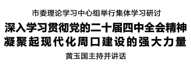 本報訊 (記者 王艷) 11月8日,市委理論學(xué)習(xí)中心組舉行集體學(xué)習(xí)研討,深入學(xué)習(xí)貫徹黨的二十屆四中全會精神,示范帶動全市各級黨組織和廣大黨員干部興起學(xué)習(xí)貫徹?zé)岢?,凝聚起現(xiàn)代化周口建設(shè)的強大力量。市委書記黃玉國主持并講話。