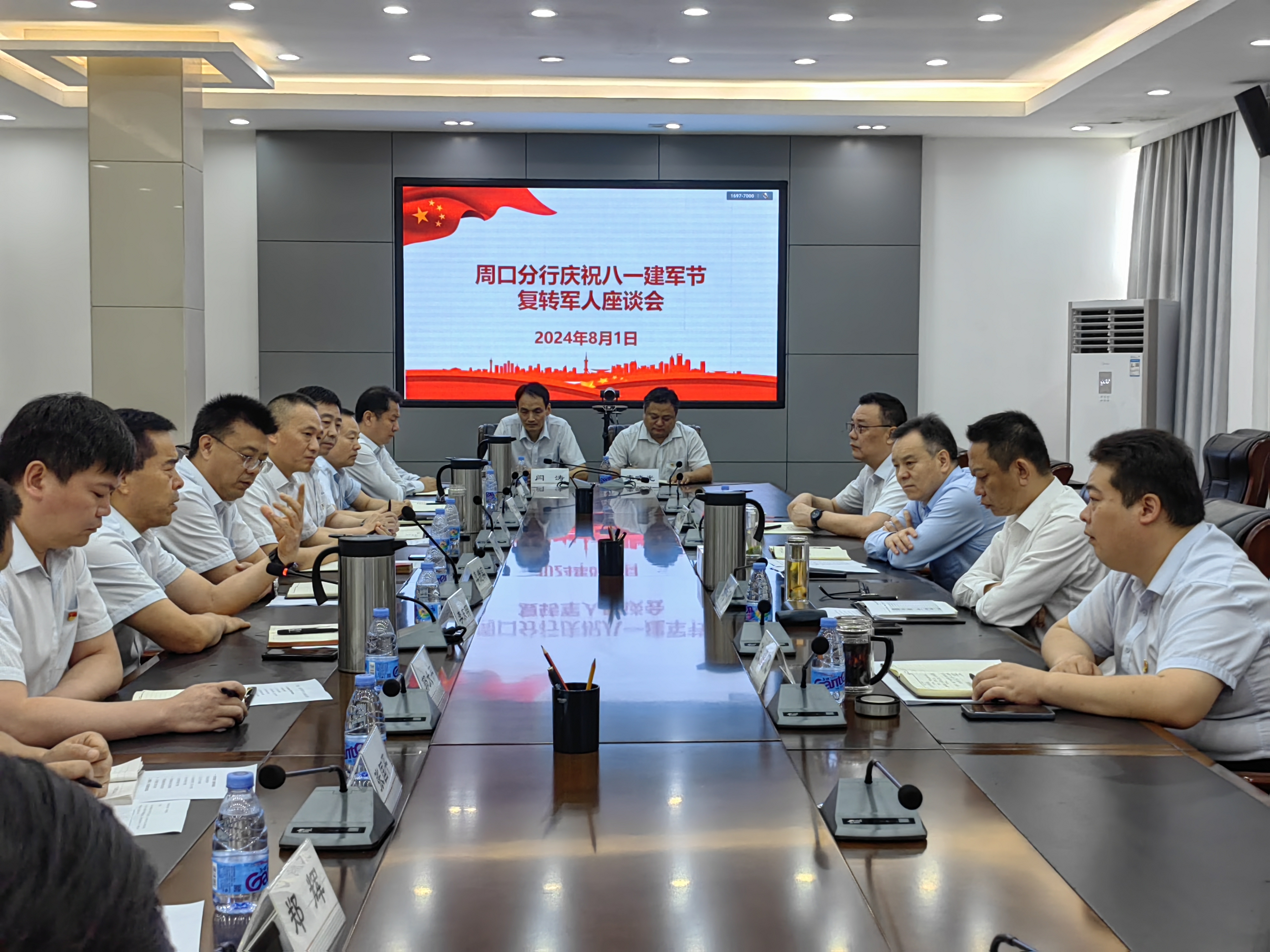 為慶祝中國(guó)人民解放軍建軍97周年,進(jìn)一步弘揚(yáng)偉大建軍精神,營(yíng)造尊崇和關(guān)愛(ài)退役軍人的濃厚氛圍,8月1日,工行周口分行舉辦慶?!鞍艘弧苯ㄜ姀?fù)轉(zhuǎn)軍人座談會(huì)。