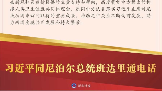 習(xí)近平指出,新冠肺炎疫情發(fā)生后,中尼兩國(guó)堅(jiān)定支持彼此抗疫努力,深入開(kāi)展抗疫合作,彰顯了守望相助、同舟共濟(jì)的精神。