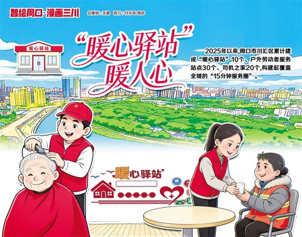 近日,周口市川匯區(qū)六一路與交通大道交叉口新增一座“暖心驛站”,可為市民提供免費(fèi)理發(fā)、縫補(bǔ)衣物、熱水供應(yīng)、圖書(shū)閱覽等服務(wù),同時(shí)為外賣員、快遞員等戶外勞動(dòng)者搭建 “能量補(bǔ)給站”。2025 年,周口市川匯區(qū)累計(jì)建成“暖心驛站 ”10 個(gè)、戶外勞動(dòng)者服務(wù)站點(diǎn) 30 個(gè)、司機(jī)之家 20 個(gè),構(gòu)建起覆蓋全域的 “15 分鐘服務(wù)圈”。