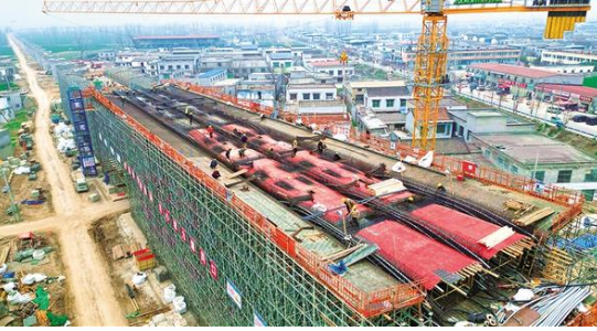 3月14日上午,中鐵十局工人在平漯周高鐵9標(biāo)段工地上開(kāi)展岔道連續(xù)梁施工。