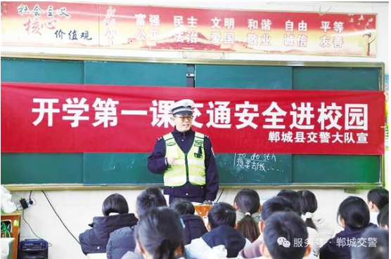 3月5日,民警為師生講解交通安全常識。當(dāng)日,鄲城縣公安局交通管理大隊宣傳小分隊走進(jìn)轄區(qū)第三實驗小學(xué),為全校師生送上了一堂生動有趣的交通安全“開學(xué)第一課”,切實增強(qiáng)學(xué)生的交通安全意識和自我防護(hù)能力,為校園周邊道路交通安全筑牢防線。