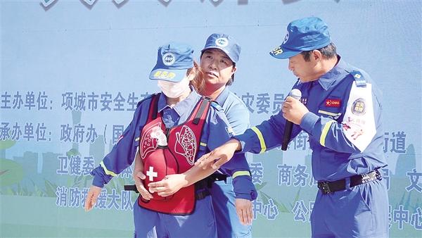 6月16日,項(xiàng)城市舉行“安全宣傳咨詢?nèi)铡被顒?dòng)?;顒?dòng)設(shè)置警示教育片展播、應(yīng)急技能演示、救援裝備展示、安全咨詢等環(huán)節(jié)。圖為項(xiàng)城應(yīng)急藍(lán)天救援隊(duì)3名隊(duì)員演示海姆立克急救法操作流程。