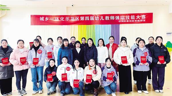 為進一步提升幼兒教師的專業(yè)技能,近日,市城鄉(xiāng)一體化示范區(qū)社會事務管理局舉辦第四屆幼兒教師彈唱技能大賽,吸引34名幼兒教師參加。圖一為選手展示才藝。圖二為獲獎選手合影留念。