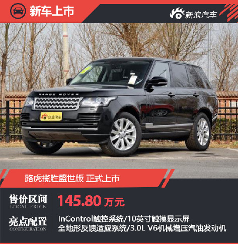 今日,路虎宣布攬勝盛世版正式上市,指導(dǎo)售價(jià)為145.80萬(wàn)元?!?a href="http://www.chebaowu.com/content/2017-10/12/content_578072.htm" target="_blank" >[詳細(xì)]