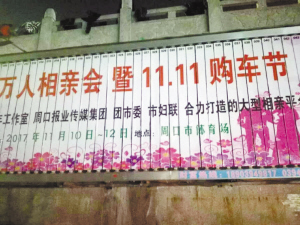 11月12日,由市委組織部、共青團(tuán)周口市委、市婦聯(lián)、周口報(bào)業(yè)傳媒集團(tuán)主辦的周口首屆大型相親會(huì)暨雙11購車節(jié)圓滿落幕。……[詳細(xì)]