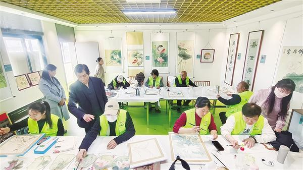 近日,淮陽區(qū)王店街道王樓村村民在美術(shù)老師的指導(dǎo)下畫荷花。作為遠(yuǎn)近聞名的“畫荷村”,王樓村一直延續(xù)著畫荷花的傳統(tǒng)。農(nóng)閑時(shí),村民經(jīng)常在老師的指導(dǎo)下學(xué)習(xí)繪畫技巧,將鄉(xiāng)村生活的恬靜與荷花的靈動融入筆墨之間。