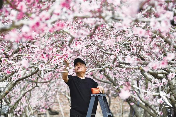 3月23日上午,工作人員為桃花授粉。近日,川匯區(qū)園藝中心的200多畝桃花競相開放,宛如世外桃源。隨著天氣逐漸轉(zhuǎn)暖,桃花、油菜花持續(xù)盛開,周口進(jìn)入“賞花模式”。