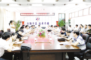 近日,安陽市內黃縣副縣長秦莉帶領該縣教育系統(tǒng)領導、老師一行27人來鄲城一高參觀、交流。鄲城一高在今年高招中取得優(yōu)異成績,省內外來校參觀、學習的兄弟學校絡繹不絕。圖為該校黨委書記、校長劉成章在向客人介紹學校教育教學工作情況。(王雪濤 攝)
