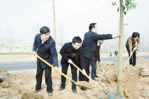 在全區(qū)多個植樹點,區(qū)四大班子領(lǐng)導(dǎo)與全區(qū)各單位干部職工加入到植樹護綠的行動中(如圖)。為確保植樹造林活動有效開展,川匯區(qū)委、區(qū)政府向48家區(qū)直單位下達了義務(wù)植樹任務(wù)通知書,任務(wù)實施單位包苗木、包栽植、包成活、包管護。2015年,川匯區(qū)計劃造林2749畝,森林撫育及改培造林300畝,新建林業(yè)生態(tài)園1處、花卉苗木基地200畝、綠化社區(qū)及林業(yè)生態(tài)示范村9個,打造創(chuàng)模精品線路1條。