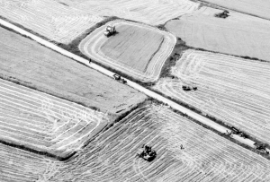 這是5月25日在江蘇省淮安市盱眙縣桂五鎮(zhèn)航拍的麥?zhǔn)宅F(xiàn)場(chǎng)。近日,我國(guó)夏糧主產(chǎn)區(qū)小麥作物自南向北陸續(xù)開(kāi)鐮收割。