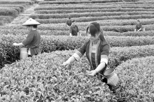 5月25日,茶農在廣西三江侗族自治縣八江鎮(zhèn)的茶園里采茶。時下正是夏茶盛產時節(jié),廣西三江侗族自治縣茶農利用雨后晴朗天氣抓緊采茶。新華社發(fā)