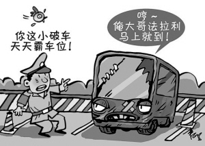 最近,在杭州市左岸花園小區(qū)門口,每天停著一輛破舊的小面包車,它的任務(wù)就是給一輛法拉利F430占車位。法拉利的車主說,家有4輛車,兩輛停家里,一輛停地下車庫,一輛停上面,但小區(qū)車位太緊張,“我也是被逼出來的!”